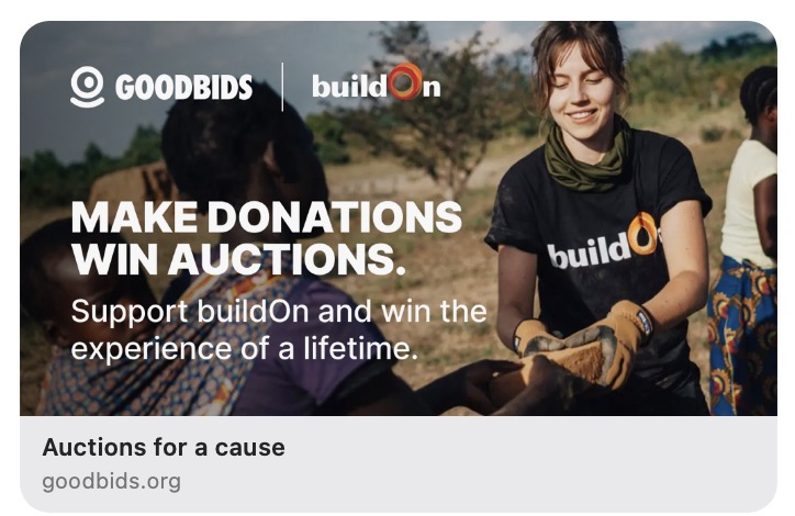 We’re testing a brand new way to host a charity auction, and I’m hoping you can check it out and even bid to support BuildOn.